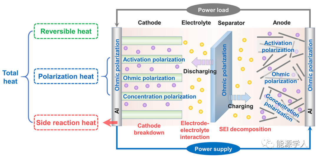 鈉離子電池(SIBs)由于其在資源和成本上的顯著優(yōu)勢,在智能電網、低速電動車、廉價電子商品等市場展現(xiàn)出良好的應用前景。電池的安全性能是決定其能否得到最終應用的重要因素之一。相比于鋰離子電池,鈉離子電池在安全性上存在一定的優(yōu)勢。例如,采用鋁箔作為負極集流體的鈉離子電池可在“零電量”狀態(tài)下進行運輸和儲存,降低了運輸過程中的安全風險。然而,如何構筑高安全的鈉離子電池仍然是一個挑戰(zhàn):鈉離子電池熱失控行為難以避免,體積膨脹、產氣、起火等事故仍會發(fā)生。鈉離子電池熱失控的根本原因在于電池內部不可控的鏈式反應產生大量的熱,造成溫度急劇升高,因此深入理解電池內部的熱效應對電池的安全性具有重要意義。