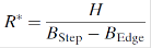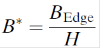 其中,B*為厚邊緣的無(wú)量綱寬度,BEdge 為厚度凸起的涂層寬度,測(cè)量涂層的厚度,厚度值第一次檢測(cè)到為H的105%時(shí)的位置定義為BEdge 的起點(diǎn),繼續(xù)橫向測(cè)量厚度再變?yōu)?/span>H時(shí)位置定義為BEdge的終點(diǎn),如圖3所示,一般鋰電池涂布中H*甚至能達(dá)到10以上。而厚邊涂層的梯度R*定義為式(3)::